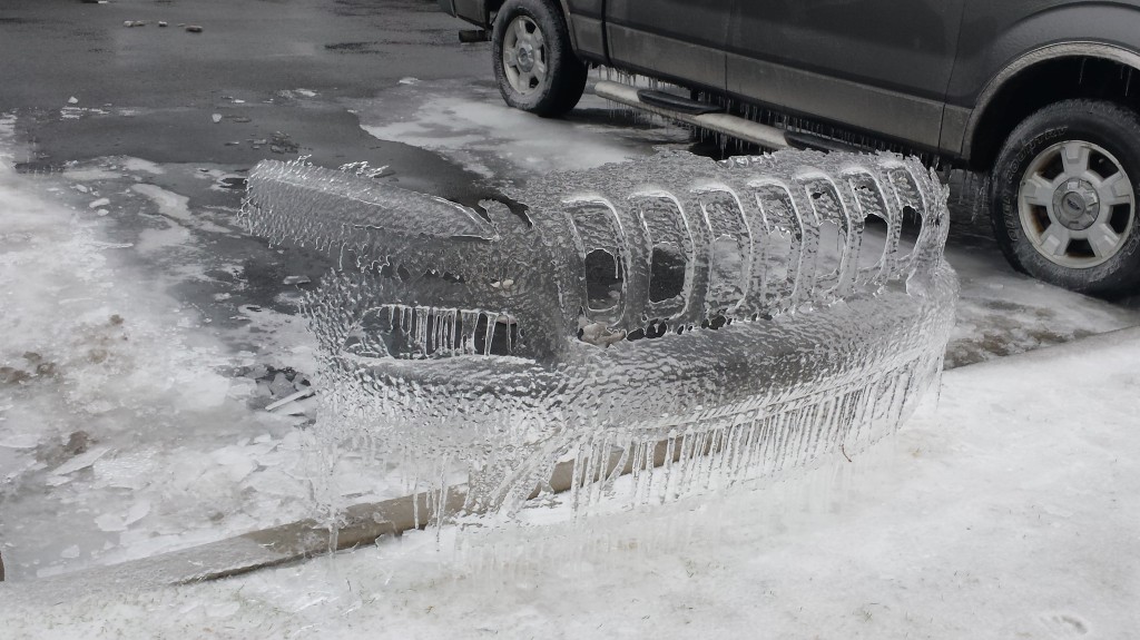 The Jeep® Cherokee belongs to a colleague, Teresa Lynn Hill, an assistant nurse manager at Vidant, who had left work about 30-60 minutes before Trista saw the iced imprint around 4:30 p.m Tuesday. Trista was just getting off work when she saw the iced imprint and, even though it was about 7 degrees outside, she took some photos and stood looking at the amazing sight for about 10 minutes.