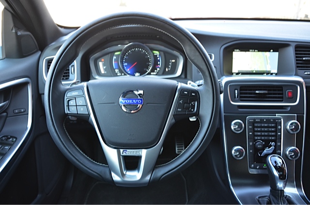 Beyond the striking red exterior that says “watch out” very loudly, the R-Design package includes very nice and supportive sport seats with leather surfaces, sport chassis, unique rear and lower front spoiler, R-Design leather sport steering wheel and shift knob, aluminum inlays and sport pedals, and a R-Design rear diffuser.