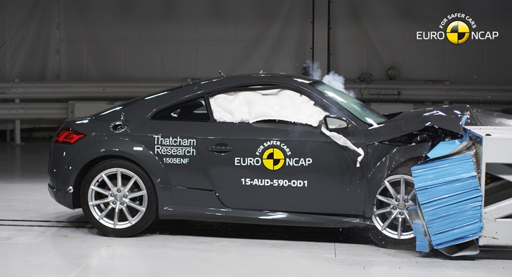 The new Audi TT has been awarded a four star overall safety rating by Euro NCAP. The third generation TT went on sale in 2014, surprisingly without a safety rating for the European market. Following last year's controversy in the UK, Euro NCAP has taken the initiative to put the car to the test themselves. The Audi TT achieved four stars overall, amongst other reasons due to the lack of latest advanced technologies such as autonomous emergency braking. This important technology is becoming more common and is already available on many other models in the Audi range. The Audi TT is the first car tested by Euro NCAP under the new 2015 rating rules that use new and updated test protocols and crash test dummies.