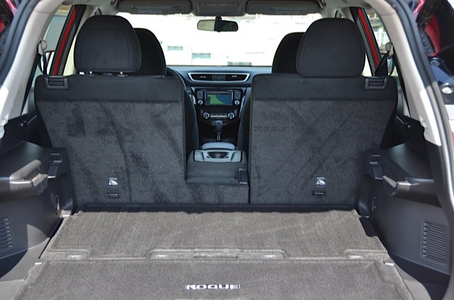 Not too many compact crossovers offer optional seating for seven, which is nice to have if you are in the student athlete car-pooling mode. Storage capacity is really good. With both rear rows folded down, the Rogue has 70 cubic feet of cargo space.