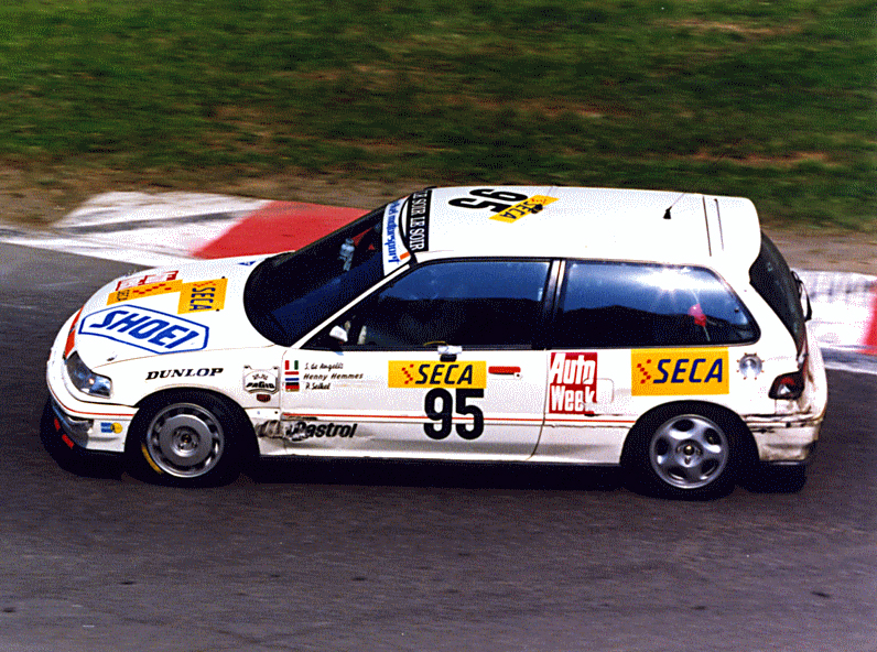 Peter Seikel, owner of Seikel Motorsport, asked me to drive the Civic V-TEC in the 24 hours of Spa-Francorchamps. I had first met the German race driver/team principal in the late seventies, when I started to participate in the 24-hour races at the famous race track in the Belgian. Seikel had a very good reputation and I was glad to drive one of his cars. But would the small hatchback be powerful enough to meet the regulations for qualifying..? It did indeed, and we qualified56th out of 85 cars to qualify for one of the 65 places on the starting grid.