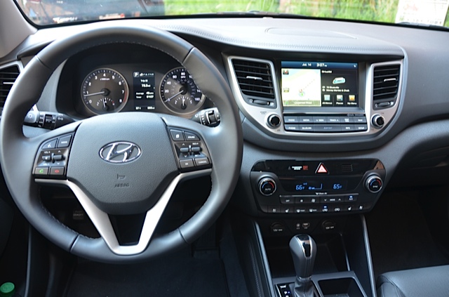 One item that really surprised me in a positive way on the new Tucson is the quietness of the interior cabin. CUVs and SUVs can act like a big drum. To improve NVH characteristics, the 2016 Tucson has applied a number of sound dampening and insulation measures including new engine mount design, new rear cross-member design, sound insulation materials added to inner fenders, underbody, instrument panel, transmission tunnel and all cabin pillars, using 335 feet of structural adhesive to insulate against road noise, where the previous model used none. Also, the door latch mechanisms were extensively refined, with lower noise, pull resistance, internal friction and great closure damping. And, to lower wind noise in the cabin, aerodynamics have been improved to 0.33 Cd.