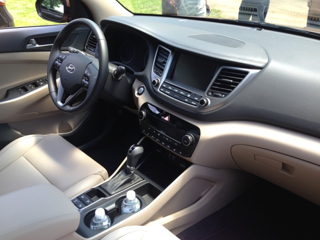 The bottom-level Tucson SE gets a carryover powertrain – the 2.0-liter, direct-injected, 4-cylinder making a modest 164 horsepower and 151 pound-feet of torque mated to a six-speed automatic transmission. They’ve wrung one more mpg out of that combination for 2016 at 23- mpg in the city, 26 on the highway and 23-mpg combined. The other three trim levels get a new engine and transmission – a 1.6-liter turbo and a 7-speed, dual-clutch automatic. This combo makes a stronger 175 horsepower and 195 pound-feet of torque. The maximum torque, we’re told, is seen at an impressively low 1,500 rpm. In addition to adding more power this one gets 3 mpg better than the outgoing 2.4-liter premium engine at 25-city, 30 highway and 27-combined. The fuel tank is 1.1 gallon bigger for more cruising range.