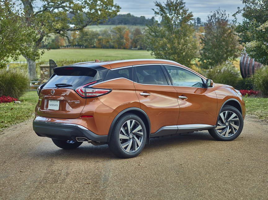 Futuristic exterior styling and the "social lounge" interior, both with most all of currently-available technology either standard or available, grab immediate attention. Underneath, the newest Murano is more conventional. The unibody structure is the latest iteration of Nissan's "D" platform, a development of what was under the second-generation Murano. And power is still from a 3.5-liter V6, still producing 260 horsepower and 240 lb-ft of torque to the front or all wheels through a CVT. The Murano was always designed expressly for the North American market, although the previous generations were built in Japan. The 2015 Murano is assembled in a Nissan facility in Canton, MS.