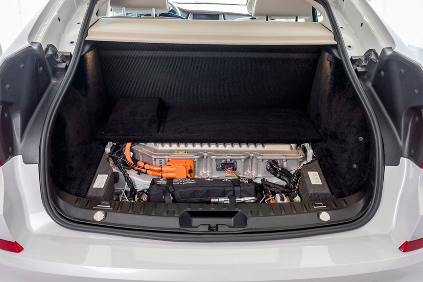 The car feels faster than I would have expected with 245 hp, but this is because torque of the electric drive is immediately available. BMW mentions an acceleration time for 0-62 mph of 8.4 seconds and a top speed of 110 mph. The prototype also feels more solid. Not surprisingly so because of the higher weight, but also thanks to integrating the tank in the car’s structure.