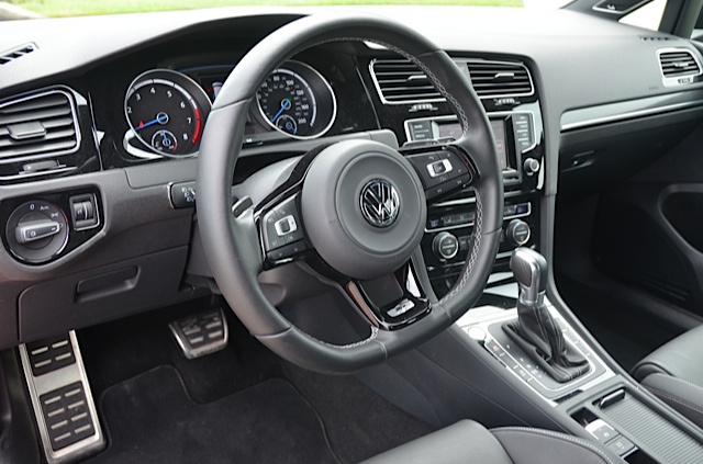 For 2015 the Golf R has 292 horsepower and 280 pound-feet of torque from its turbocharged and direct-injection EA888 TSI 2.0-Liter engine. That’s 36 hp and 37 lb-ft more than the previous version. For now, the only transmission is a six-speed DSG dual-clutch automatic transmission. It offers a launch control feature that enables a 0 to 60 mph acceleration time of 4.9 seconds. The top track speed is 155 mph. That’s plenty quick for a very practical hatchback.