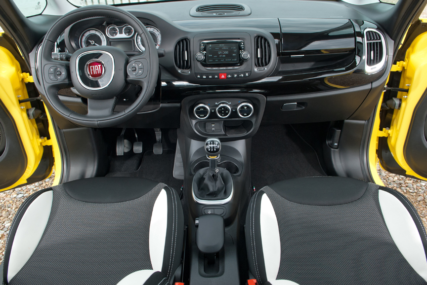 Power for the North American market is from the 1.4-liter turbocharged MultiAir four-cylinder engine familiar from the 500 Abarth, driving the front wheels through a selection of six-speed transmissions, manual, dual-clutch automanual, or torque-converter automatic. Curb weight is up by around 750 pounds, so the 500L is not the hooligan that the Abarth is, but it is far more entertaining than your typical small crossover, and the "Touring"-spec suspension is much more agreeable to comfort-oriented tastes than the Abarth's stiff sport tuning.
