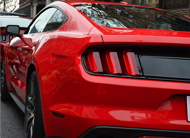 RIDE AND HANDLING: It only took 50 years, but all Mustangs now have independent rear suspension (IRS). Yes, there have been special-edition Mustangs and aftermarket conversions with IRS before, but no regular production models. What's the big deal? Better control of wheel movement for improved roadholding, especially on uneven surfaces, and greater comfort. Drawback, and why it took so long? Cost -- more parts and more complexity. But the previous Mustang was the last performance car, and about the last non-truck vehicle, to have a solid rear axle. It works, and should work especially well when pushed hard. The new Mustang is a natural-born autocrosser, and is also solid and secure on the road, even when surfaces are less than ideal. Steering effort varies with driving mode, see below. The Performance Package adds larger discs, vented in the read as well as front, and four-piston front calipers for the EcoBoost. Even bigger rotors and six-pot Brembo calipers for the GT. It stops!