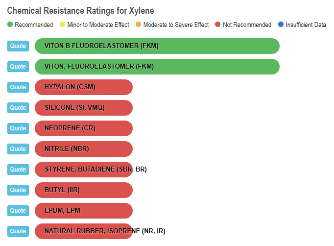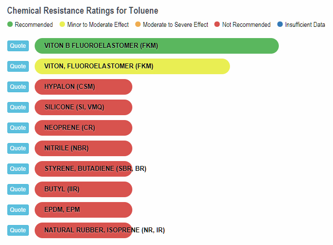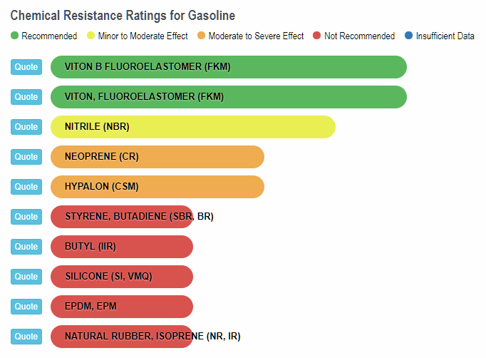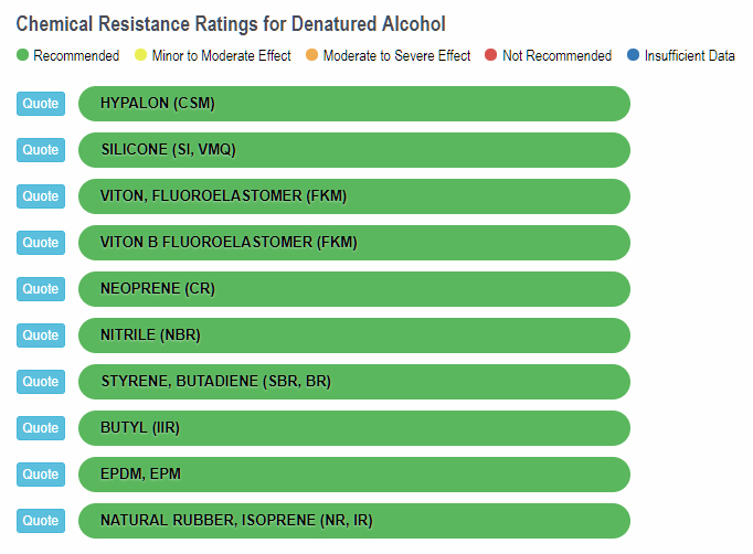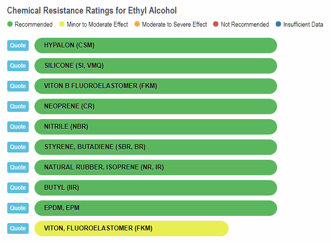 Now let's look at scientific comparisons. A company called Custom Advanced Connections has a website that compares a wide variety of chemicals with different types of rubber (https://www.customadvanced.com).