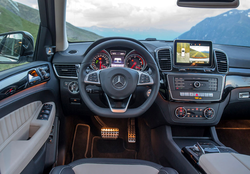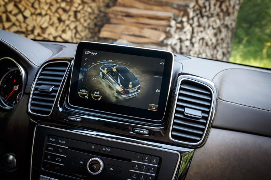 The GLE is quiet and handles well. The air-suspension wicks away uneven patches in the road. You can feel that the SUV is heavy, but it takes turns with ease and it stays well put on the pavement. The air-suspension combined with the Adaptive Damping System Plus that adapts each wheel to the driving situation and road surface in order to reduce, for example, rolling. With Dynamic Select handling system, the driver can chose between six different modes, from comfort to sport to individual. In Sport transmission mode the car is lowered by up to 15 mm, or 0.6 inches and by nearly an inch in Sport Plus.