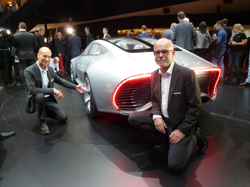 After the presentation, I walked up to Dr. Teddy Woll, whom I interviewed two years ago about the aerodynamics of the new S-Class. He is the head of aerodynamics/windtunnel department and was accompanied by Martin Konermann, also an aerodynamics expert and the chief engineer of the Concept IAA. Both were happy to tell more about the development process that started seven months ago.