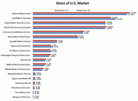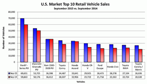 U.S. September 2015 Auto Sales Reach Ten Year High