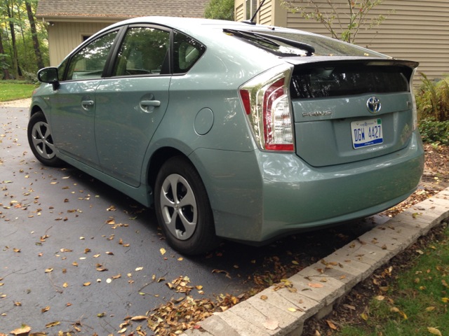 This mid-size Prius, a 5-passenger sedan, exhibits a distinctive,
