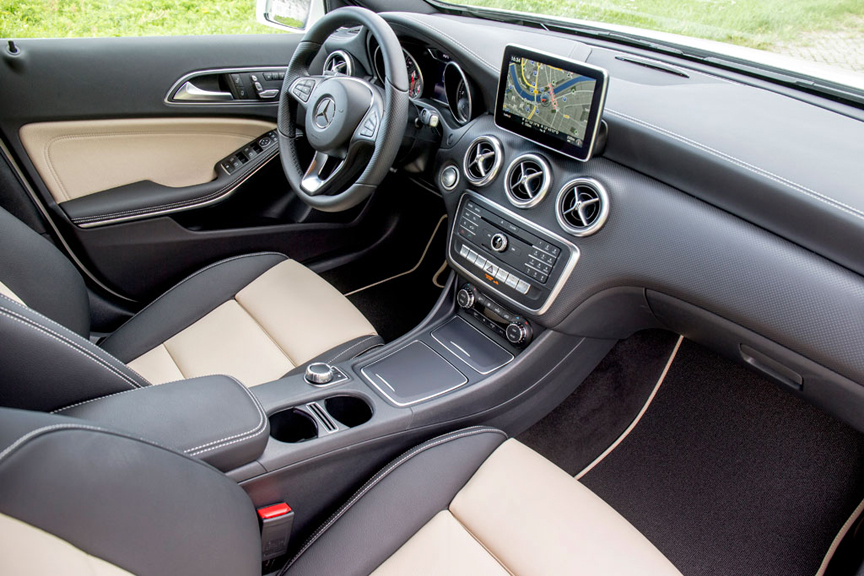 It speaks for itself that Mercedes has improved connectivity of the A-Class by equipping it with MirrorLink and Apple CarPlay for better integration of the smart phone. Mercedes has also refined the assistance systems and offers Attention Assist as part of the standard equipment. It warns the driver when he or she is getting wary and is active between 60-200 kmh/ 37-125 mph. If the car is optionally equipped with Comand Online, the system looks for the nearest parking space. Collision Prevention Assist reduces the risk of rear-end collisions further by autonomous partial braking.