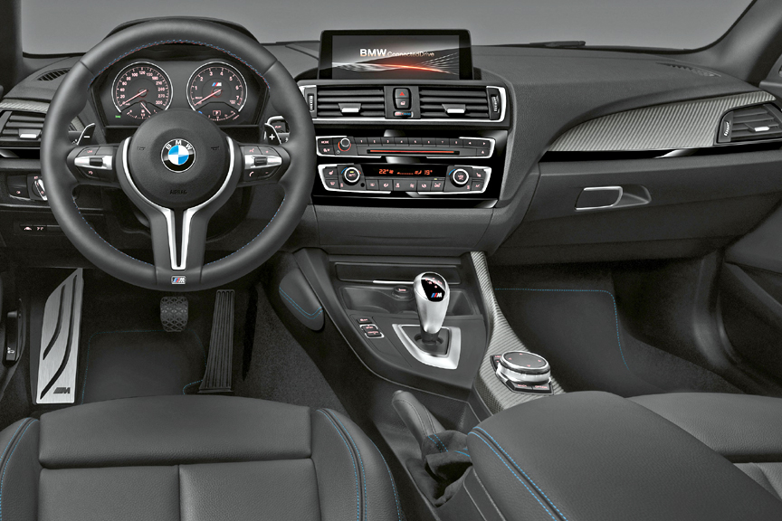 The heart of the M2 is the new I6 engine with M TwinPower Turbo technology that debuted in the X4 M40i earlier this year, but with 10 more hp. In the M2 the 3.0-liter engine delivers 272 kW//370 hp with the same amount of torque (465 Nm/343 lb-ft). Provided the engine is teamed to the optional 7-speed M DTC (double clutch transmission) and Launch Control, it should enable the M2 to sprint in 4.3 seconds from 0-62 mph. With the standard 6-speed manual it only takes 0.2 seconds extra. The top speed is limited to 250 km/h /155 mph, with the M Driver’s Package to 270 km/h /168 mph. And for those who are interested in fuel consumption, BMW mentions a combined 8.5 l/100 km, or 33/2 mpg mp with 199 grams/km CO2 in standard trim and 7.9 l/100km (35.8 mpg with 185 g CO2 with the double clutch transmission.