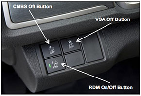 RDM also has a customizable initial warning of either a steering wheel shake/vibration, or an audible alert. This can be customized in the vehicle settings. RDM can be turned off by using the RDM Off button on the left of the dash (see Page 81). See the 2016 Civic RDM Animation for an active representation of system operation.