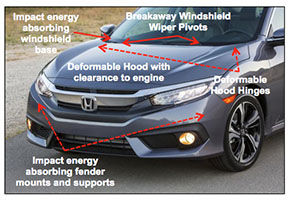 - Hood is designed to deform if contact is made with either an adult or a child pedestrian