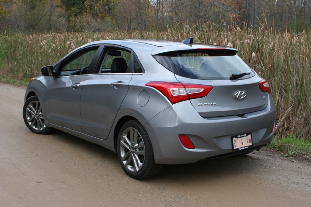Elantra GT’s exterior design catches one’s eye with swoopy lines, brash front fascia, plenty of character from every angle and flashy 17-inch alloy wheels that look mighty big on this small car. Hyundai’s complex design language made it into their small cars with this current generation of Elantra making it fully modern and, in this reviewers view, very attractive.