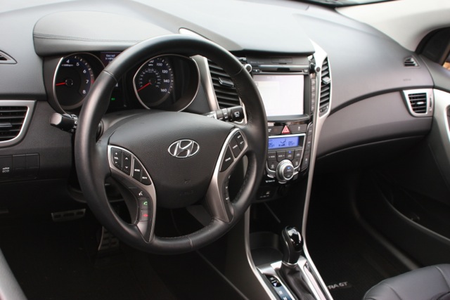 Under the hood we have a normally aspirated, 2-liter 4-cylinder making 173 horsepower and just 154 lb-ft of torque mated to a 6-speed automatic transmission. This is the only engine offered in the Elantra GT but you can have a manual transmission if you like. Though just a bit buzzy, it makes for a decent powertrain with enough power most of the time. In fact it is one of the more spirited engines in the compact hatch class. The EPA rates this 3,000-pound car at a less-than-impressive 27-mpg combined, 24 in the city and 33 on the highway. Many of Elantra’s competitors approach 40 mpg on the highway. Our experience this week was very close to the promised numbers.