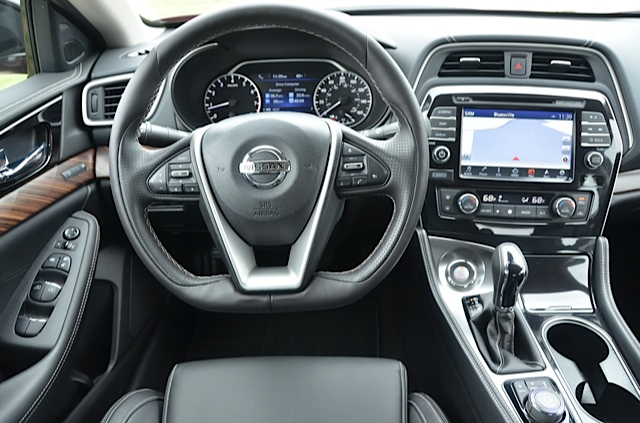 I spent a week driving a Platinum model. So I got to experience a fully-loaded Maxima with all the top-of-the-line features like front and rear parking sensors, power tilt and telescopic steering column, rear window power sunshade, climate controlled front seats, heated steering wheel, Bose 11-speaker sound system, and a 360-degree around view monitor.