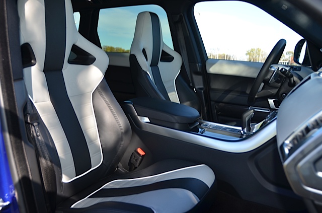 All of this plus more comes with a price. Base price for the Range Rover Sport is $79,995. The SVR package, remember the 550HP, is $30,480. It includes all the equipment from the Sport Autobiography model plus items like unique 21-inch wheels, blue painted Brembo brake calipers, Switchable active exhaust (I’ll come back to this) with quad tailpipes, unique SVR badges, grille, tailgate and front and rear bumpers, special paint treatment, 14-way power front SVR sport seats, and more.