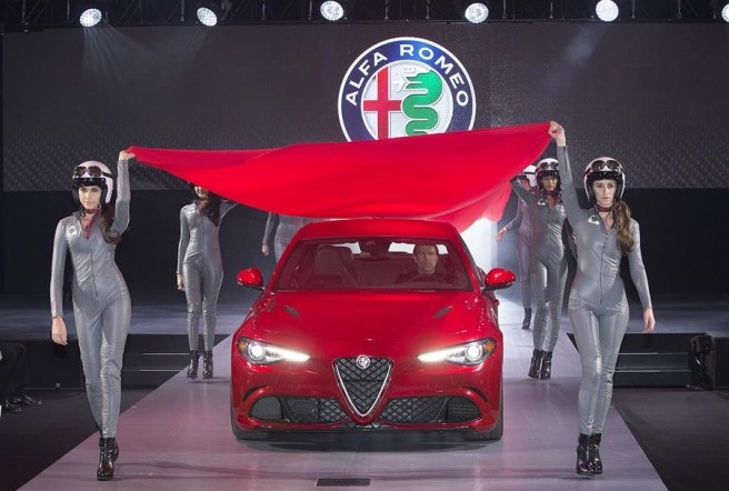 The throaty rasp of a 505-horsepower V-6 echoed off the walls of the Los Angeles Convention Center Wednesday morning as a bright red, $70,000 Alfa Romeo Giulia Quadrifoglio rolled down a catwalk followed by a harem of gorgeous supermodels.(Watch this and all press presentation videos in The Auto Channel's 2015 LA AUTO SHOW Press Pass Coverage