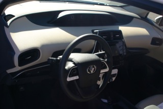 Available on most Prius models is a new “Safety Sense” system with automatic pre-collision braking. We tested the system at a nearby abandoned airport where they set up a couple of demonstrations of how the system will intervene and come to a complete stop under certain circumstances if the driver fails to take control in time. It was a bit disconcerting at first as instinct told me we were going to hit the barrier. But when I was finally able to let the car control the situation it came to a sharp, hard stop just inches from the simulated van and pedestrian. The system will cost about $600 extra, but for some folks might be worth the cost. Also standard on all models is a rear-view camera.