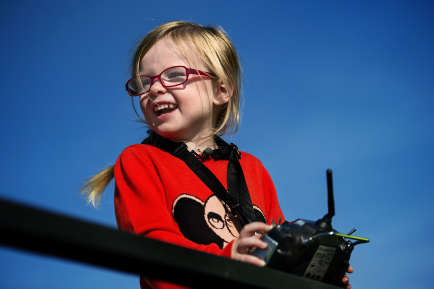 STOCKHOLM - December 3, 2015: Volvo Trucks' newest Live Test, "Look who's driving", sees four-year-old Sophie drive an 18 ton Volvo FMX through a construction area using a remote control. The truck has been given several new functions over the year, and the objective of the test is to show how much it can tolerate and how easily it copes in the most demanding environments.