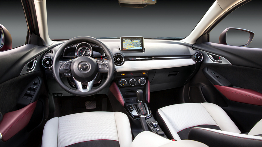 SAFETY: The CX-3's structure protects passengers with all of the currently required safety features and technology, including multiple air bags, safety cell and crumple zones, dynamic stability control, a tire-pressure monitoring system, and backup camera. Brakes are four-wheel disc, with antilock, electronic brake-force distribution, and brake assist. At Touring level and above a blind-spot monitoring system is standard. The Grand Touring's i-Activsense package consists of radar cruise control with proximity warning, smart city brake support and smart brake support systems, with collision warning, lane departure warning, distance recognition support, high-beam control, automatic headlights, and rain-sensing wipers.