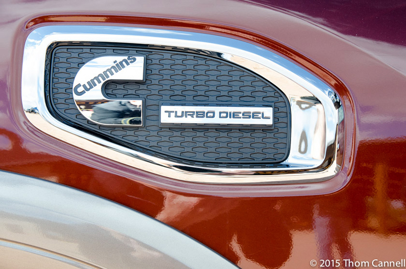 Ride quality and interior quietness were primary goals, ones that have been met. We put at least 300 mixed miles on different trucks including towing through Arizona mountains with a 9.000 pound trailer attached. On the multi-hill route cross winds exceeded 25 mph; we had no problems. On two lane roads with no load the ride was comfortable and diesel noise absent. The typical diesel noises are reduced by additional firewall noise suppression and other noise abatement treatments making the cabin impressively, and un-dieselish, quiet. Fundamental to the quietness is the Cummins 5.0-liter V-8 itself and its ability to use up to seven pre-main-post injections. These reduce typical diesel clatter, especially at idle, so yes, you can go through a McDonalds drive through and get your order understood.