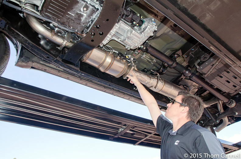 The engine is as modern as any, with a CGI block (compacted graphite iron) which offers lighter weight and greater strength than cast iron. Its glow plugs are ceramic and heat up in two seconds, the heads are aluminum with composite valve covers, and the dual overhead cams are chain driven. Those DOHC heads have four valves per cylinder, use Bosch high pressure fuel injection, and Holset (a Cummins company) M2 dual stage turbocharger. Cummins Emissions Solutions is totally responsible for the exhaust treatment system, which has more controls and sensors than Congress. Of course it uses urea to treat the exhaust and moderate nitrous oxide emissions, and mixes in the urea, atomizing it ahead of the selective catalytic reduction (SCR) device. Cummins does NOT add any fuel to warm the system, which enhances fuel economy. As you may know, before SCR (2004-2011) most emissions control was done in the cylinder, depressing fuel economy.