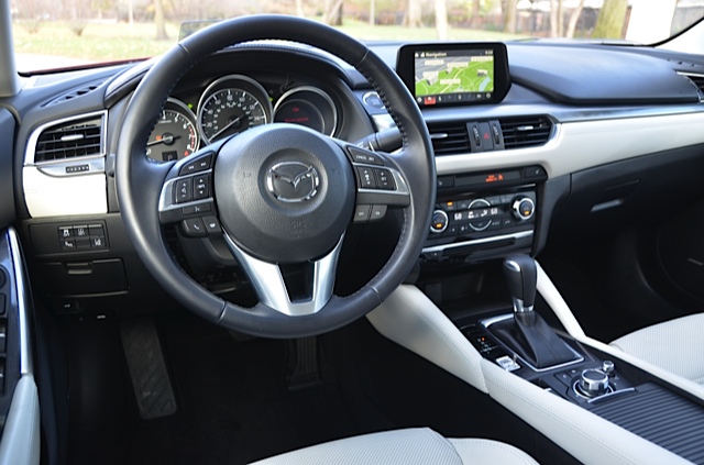 The media-loan Mazda6 Grand Touring I drove is priced at $30,195. Features include Parchment leather, new instrument panel, seven-inch full-color touchscreen display, active driving display, LED lights, LED lighting signature grille, LED fog lights, Mazda Connect Infotainment System and a sport mode button.