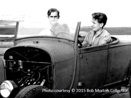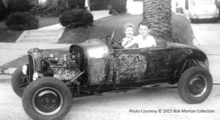 A 16-year-old Bob Morton takes his proud mother out for a ride in his home-built hot rod in 1947.