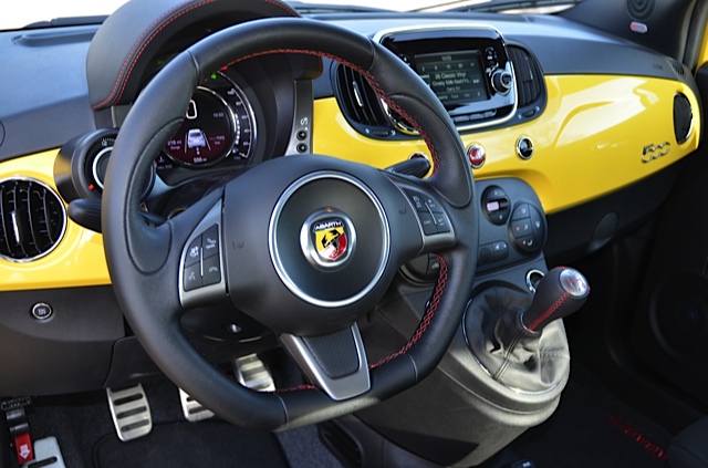 Recently I was again driving a 500 Abarth in a very bright Giallo Moderna Perla exterior. That’s, modern pearl yellow and it’s hard to miss, coming or going. Priced at $22,575, the 160 HP 1.4-L 16-valve turbocharged engine coupled to a five-speed manual transmission provides lots of zip around town. A six-speed automatic transmission is also offered as an option.