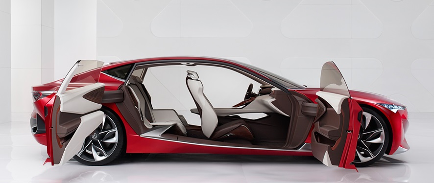 With an emphasis on high-contrast details; the intersection of modern, sheer surfaces and muscular, organic sculpting; the Acura Precision Concept communicates Acura's focus on performance and prestige. The concept features the new Diamond Pentagon grille, the biggest and boldest express of the Acura marque. The Acura Precision Concept also previews the next-generation HMI interior technology, utilizing facial recognition, a large center screen, heads up display and touch pad navigation. The concept was created by Acura's California Design Studio under the direction of Acura global creative director, Dave Marek, with the exterior design led by Michelle Christensen, principal exterior designer.