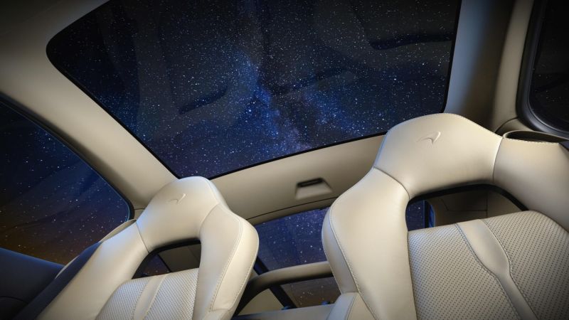 The standard fixed glass Panoramic Roof glass is treated with 18 percent transmission tint – the same as the glass roof of the McLaren P1™ – and also features SSF (Sound & Solar Film) to absorb solar radiation while providing additional noise insulation. With the increased glass area of the 570GT, cabin temperatures are regulated and maintained by an enhanced dual-zone air conditioning system. This system allows fully automatic and independent settings for both passenger and driver. A two-stage Automatic function – ‘Auto’ and ‘Auto Lo’ – allows a desired temperature to be obtained, with the latter setting limiting speed of the fans to minimize noise within the cabin.