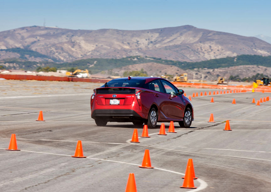 Upon approach to the huge airfield that nowadays is used for events, I remembered that this is the place where I won the ‘Hot Shoe Award’ with the Saleen S 302 Extreme, a 600 hp/6600 lb-ft strong Mustang. After our 30 mile drive on public roads we were impressed with the agility of the 2016 Prius and after we reached the Toyota tent along the old runway, we realized that we were going to drive the new model on a handling course. Indeed, a handling course…!