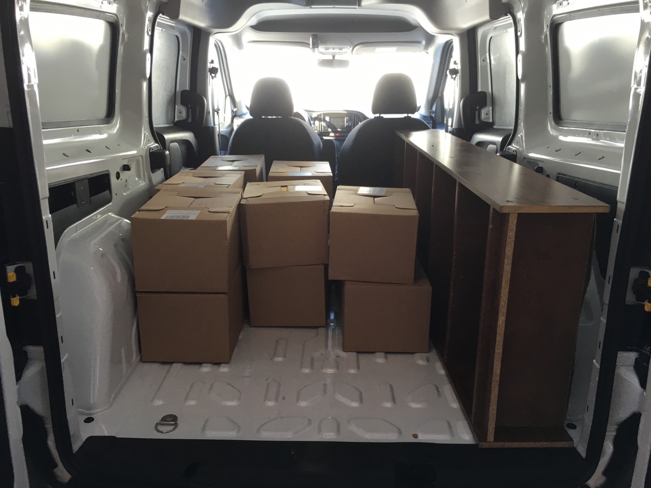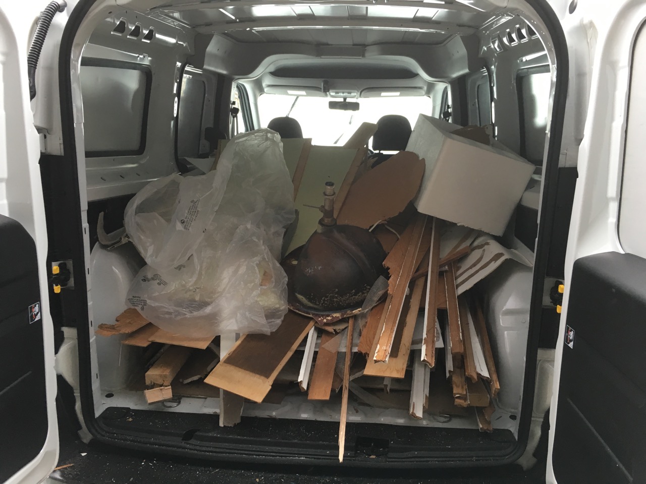 A friend needed to move her queen mattress and box springs. That was a day I wished I’d had the full sized ProMaster as squishing the mattress inside, then fitting the (fortunately) separable box springs was less fun, but successful. Nonetheless, capacity for a queen-sized mattress was surprising. And while I didn’t load any plywood, standard sheets of paneling or sheetrock fit between the wheel wells and lie flat, as can pallets of goods loaded by a fork lift. What I did load was construction debris bound for the recycling center, over a cubic yard and the full opening doors were a blessing both loading and unloading.