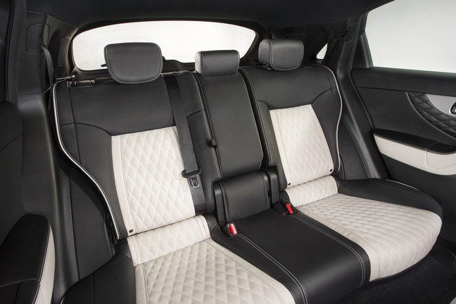 The Limited model’s exterior enhancements begin with a unique front fascia, LED daytime running lights replacing the standard QX70 fog lights and a new grille design (coming on all 2017 QX70 models). Other changes include body-color side air vents, dark-finish outside mirror housings, dark finish rear combination lamps and a stainless steel rear bumper protector. Capping off the exterior are a rear hatch-mounted "Limited" badge and unique 21x9.5-inch multi-spoke premium paint-finished aluminum-alloy wheels mounted with 265/45R21 V-rated all-season tires.