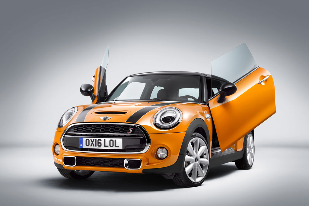 MUNICH, April 1, 2016. Now the Mini community has another gimmick to talk about. Their beloved brand is offering Scissor Doors for the Mini 3-door, Paceman and Convertible models. As from September on, the option will also be available for the 2017 model years of the 5-door, Clubman and Countryman. The wing doors will costs 1,959 euro, in the US $ 1,995.