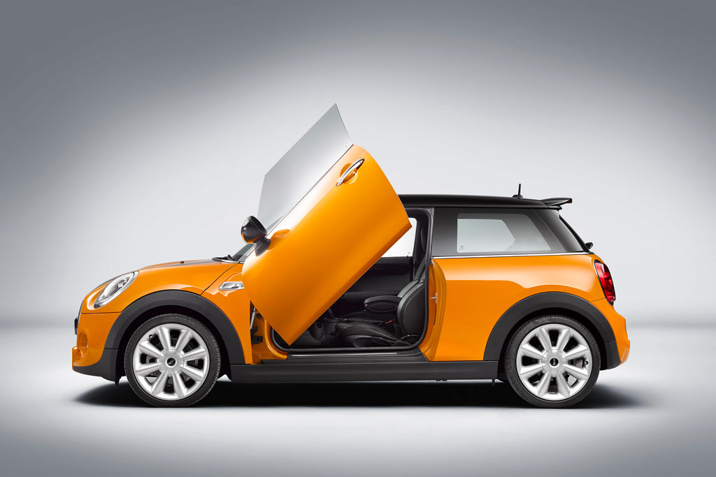 By opening vertically, the Scissor Doors offer a good solution in tight parking spots. The opening width of 1,930 mm/76 inches of the Mini 3-doors with this option is 30 per cent less than that of the standard doors (2,681 mm, or 105.5 inches). The Scissor Doors are electro-hydraulically activated via the standard remote control. In conjunction with Comfort Access, that is also an option, the doors can be opened and closed by pushing a button on the door handle, with the ignition key in the driver’s pocket or purse.