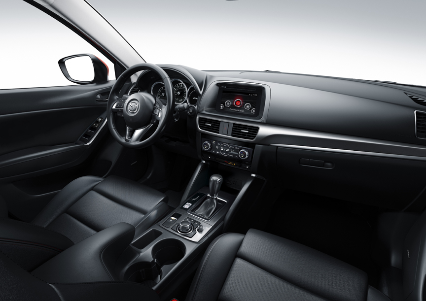 COMFORT: Revised seats, a new console design with an electronic parking brake switch adding a bit of space. The Mazda Connect infotainment system gets a larger touchscreen, at the top center of the dash. It’s also controlled by means of a knob and well-marked hard buttons on the console. Styling, as expected in a Mazda, is more European than Asian or American, with elegant simplicity, high-quality materials, and precise fit and finish. Front seat comfort is very good, with power adjustment on the driver’s side. At Grand Touring level seating surfaces are leather, as is the steering wheel rim. The tilt- and reach-adjustable steering wheel has the usual audio, information, phone, and cruise controls. Backlit instruments are easily read in all lighting. The rear seat cushions are a bit higher than the fronts, for passenger visibility. Headroom won’t be a problem. Legroom and width are good, too, with the usual caveat about the center position being best for small people and short times. A 40/20/40 folding seatback helps usefulness and there is plenty of other space around the cabin. Audio choices are all current varieties.