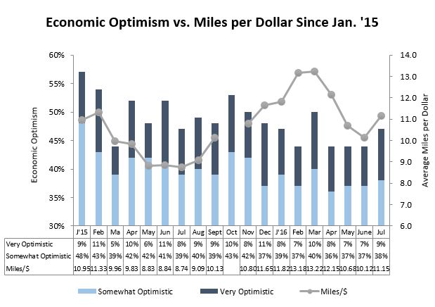 Overall consumer optimism about the U.S. economy increased three points to 47% in July, but there were significant demographic variations. 60% of younger consumers ages 18–34 say that they are optimistic, compared to only 37% of those ages 50 or older.