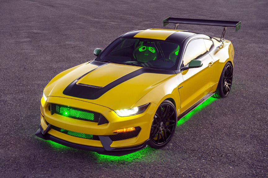 The Ford “Ole Yeller” Mustang exterior and interior were designed by Ford Design Manager Melvin Betancourt. Interior enhancements were supported by Ford Designer Nicole Rush and the Ford design fabrication team. The custom modifications were performed by MAD Industries, led by Chris Mangum. Additional contributers to the project include Ford Performance, Brembo, Carbon 2 Carbon, BASF Refinish, Pirelli Tires, Diode Dynamics, Rigid Industries LED Lighting, sPOD Power Distribution & Switching Components, 3M Window Films, PIAA, APR Performance, Rosen Electronics, FOCAL/The Source AV, Odyssey Battery, Recaro, Northern Engraving, Miko, American & Efird, Takata Holdings, Inc., Forgiato Wheels, Ceramic Pro 9H, Coverkings, L&G Enterprises and Signature Performance Tire & Wheel.