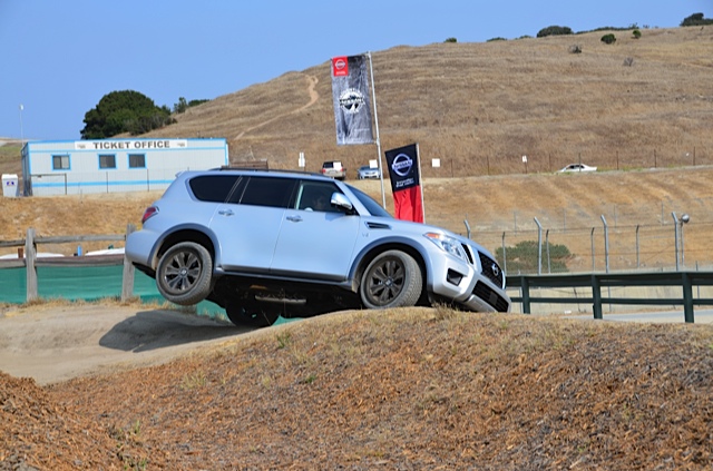 We drove the Armada on a man-made off-road course with steep inclines and alternating undulations. The stiff structure keeps everything in place and the available low-range gearing and hill descent control makes up and down inclines easy to tackle.