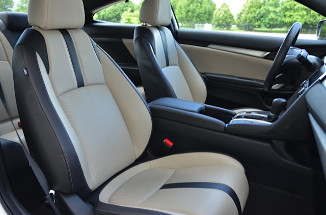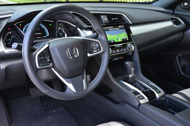 Civic coupes in the LX and LX-P trims are powered by a 158HP, 2.0-L engine. The LX is priced at $19,050 with a 6-speed manual, the only manual available. The EX-T, EX-L and Touring trims are powered by a 174HP, 1.5-L turbo engine mated to a CVT. The top of the line Touring, which was my media loaner, is priced at $26,125.