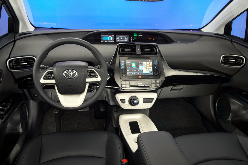 It’s longer, lower, wider, more powerful — and also lighter and more efficient. Its looks combine influences from Toyota’s Mirai hydrogen fuel cell car with Prius cues, and it’s still a useful five-door hatchback. Under the skin, the 2016 Prius is based on Toyota’s New Global Architecture (TNGA), a holistic concept for chassis and powertrain development and integration. Sitting on the same 106.3-inch wheelbase as previously, the body is 2.4 inches longer, 0.6 inches wider, and 0.8 inches lower than the previous generation. That’s not enough to negatively impact maneuverability or ease of parking, and the new structure features independent rear suspension for the first time in a Prius. In common with other newer Toyotas, careful suspension and steering calibration make the new Prius a pleasant car to drive, not a mere transportation appliance.