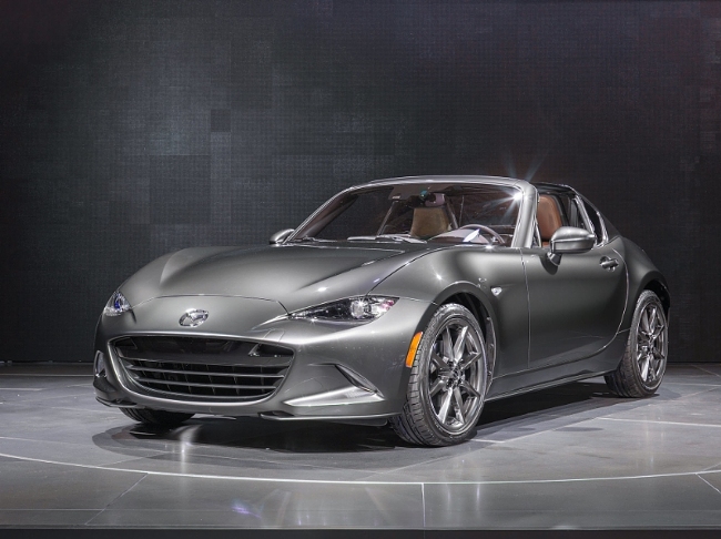 IRVINE, Calif., Aug. 18, 2016 -- Revolutionary and breathtaking to look at, yet simple and elegant in concept, the 2017 Mazda MX-5 Miata RF made its debut at this year's New York International Auto Show with rousing acclaim. MX-5 RF was introduced with a color combination that will be exclusive to MX-5 RF versus the MX-5 soft top: Machine Gray Metallic paint color, Auburn Nappa leather interior trim with a hand-painted black roof panel, based on the Grand Touring trim level.