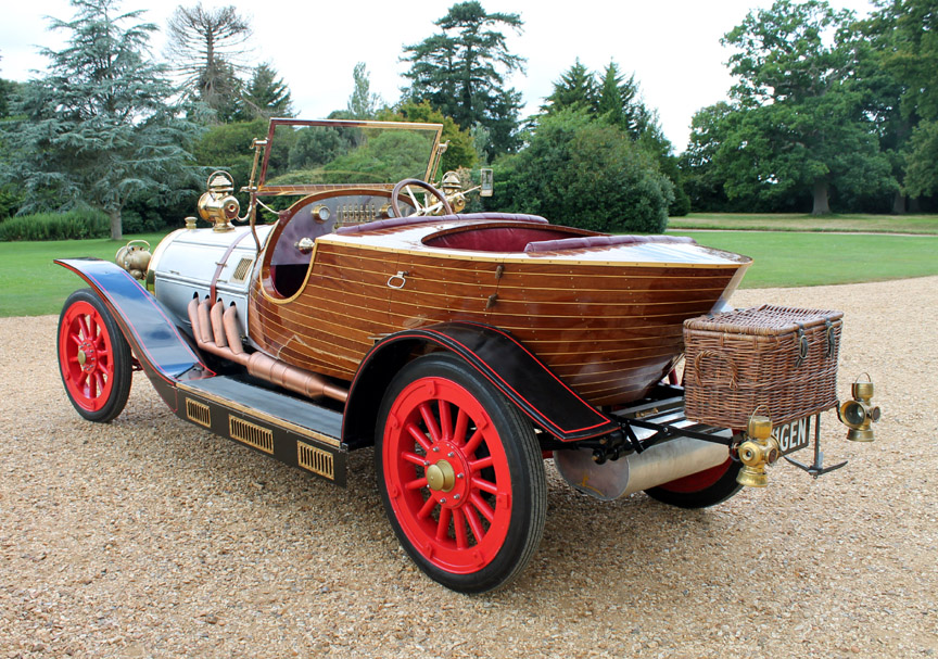 Some authentic parts from the wrecked car were used to build the Chitty reconstruction, including three body panels, part of the elegant radiator cowling, one of the headlamps, wheels and leather straps. The boat builder who created the original wooden ‘boat tail’ bodies has also made a new version for this Chitty reconstruction and a V6 engine has been installed to give this stunning machine power.