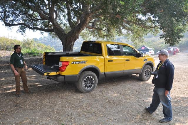Some of us began with the off-road experience on top of the mountain above Carmel Valley Ranch. They had dug and dozed a nice little course up there out of the native soil and rocks through which we could slowly drive the trucks. With large swales, side hills and a variety of conditions we took each model of the new Titan through its paces, sometimes on four wheels, sometimes on three and occasionally teetering on two. My impressions were of a solid, entirely competent truck in these conditions with all the appropriate drivers assistance devices needed to handle such challenges.